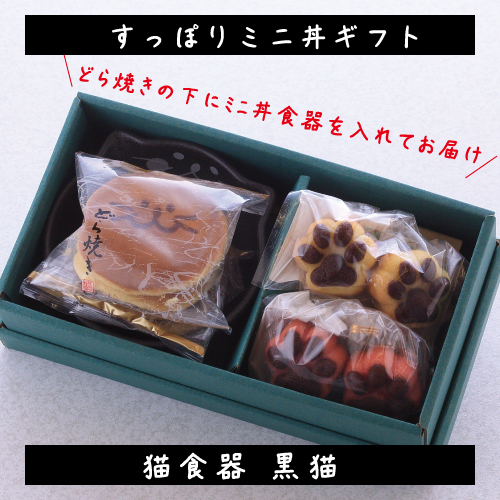 この度は【すっぽりミニ丼ギフト(黒猫)】かわいい猫耳食器とすっぽり入るどら焼きとにくきゅうをが入ったギフトをご購入いただき誠にありがとうございます。